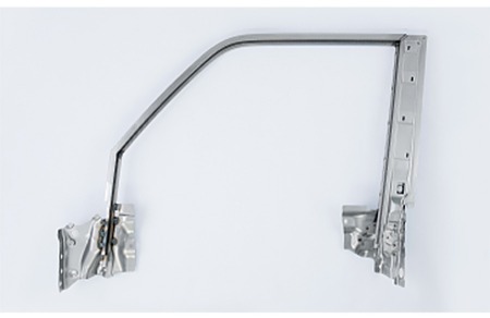 ■「車 体」(ドアサッシュ(写真中央)他):ロールフォーミング成形や高張力鋼板に対応したプレス成形技術、さらには多様な溶接技術を駆使し、車両の軽量化という重要な課題に取り組んでいます。この分野における長年の知見と技術力を活かし、パートナー企業と連携しながら、さらなる軽量化技術の革新に挑戦しています。