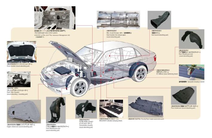自動車に求められる静粛性・安全性を実現し、快適なカーライフの実現に貢献している自動車用防音材、防錆塗料などを扱っています。